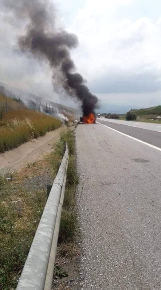 Erzin’de Tem’de Seyir Halindeki Araç Yanarak Kullanılamaz Hale Geldi