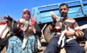 Akaryakıt karıştığı argüman edilen yağmur suyu birikintisinden içerek telef olan küçükbaş hayvanların yavrularını biberonla yaşatmaya çalışıyorlar